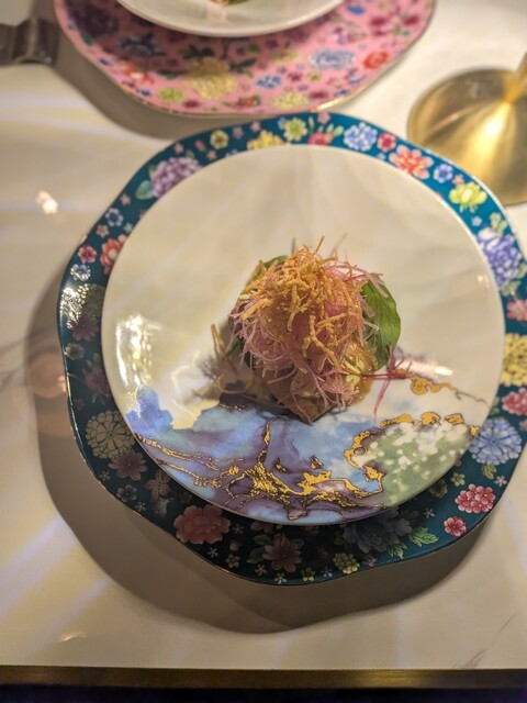 上品なお料理が続いた中で、〆で旨みの濃いライスヌードル!もちもちした麺に絡むタレが、ジャンキーさを求める人も上品さを求める人も両方に刺さる。こういう料理って最強なんですよね。