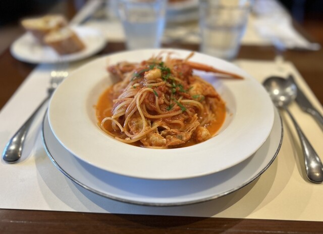 私は、手長海老のトマトクリームソースに