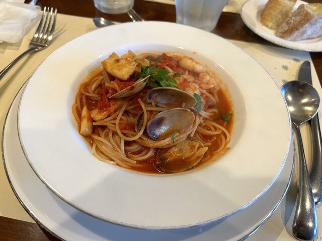 パスタは2人とも魚介系にしたのですが、細めのパスタで絶品です╰(*´︶`*)╯