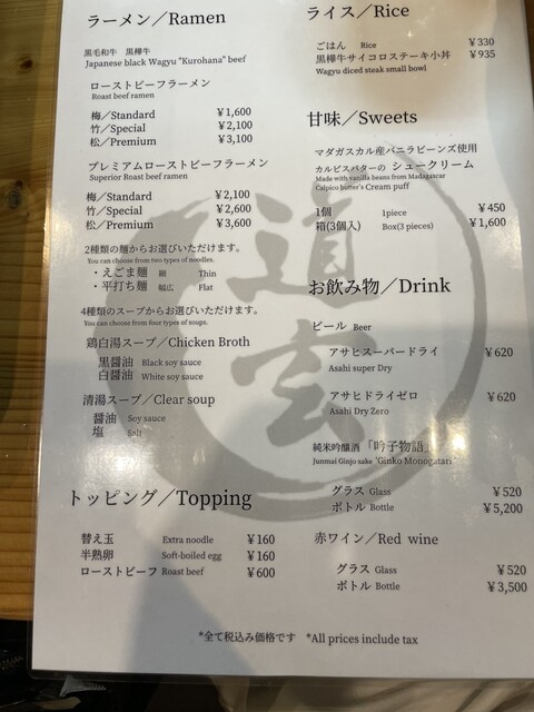 ラーメン1杯の値段は高いが、それに見合った内容のラーメンなので納得。