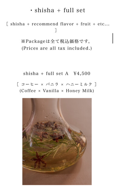 shisha + full set C ¥4,500[ ラズベリー × ローズ × アールグレイ ](Raspberry × Rose × Earl Grey)とアップルジュース、マンゴージュースそれぞれ770円注文!fruittop目的で来たけど大好きな詰め合わせすぎてこっちwおいしかったですー!