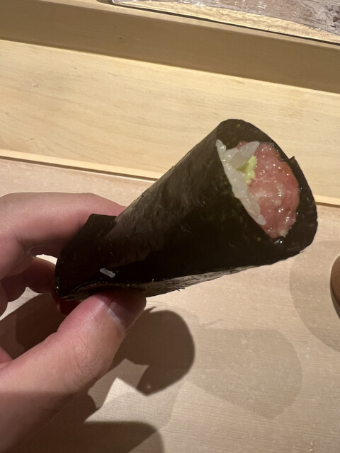 特に目についた点は白酢と赤酢が使い分けられており、都度小分けにされたシャリが奥から運ばれてきたことです。トロを握る際はシャリの温度も高めにされていました。強めの赤酢が続くとしんどいなと思うときもあるので、すごくいい仕事だなと感じました。