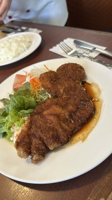 カツの下にキャベツをカレー風味にしたものが入ってたかな。そっちはかなりお腹いっぱいになりそう!