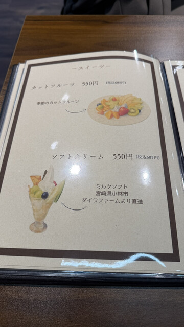 メニュー表には商品のイラストが載っているのですがこれが逆詐欺すぎてとんでもない!!プリンアラモードは680円なのですがフルーツ盛り盛りでメロンなんかも載っていたりして、これで本当にこの値段!?という感じでした。