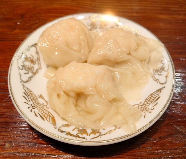 別皿で提供されたワンタン、まずは海老ワンタンから。こちらも相変わらずの