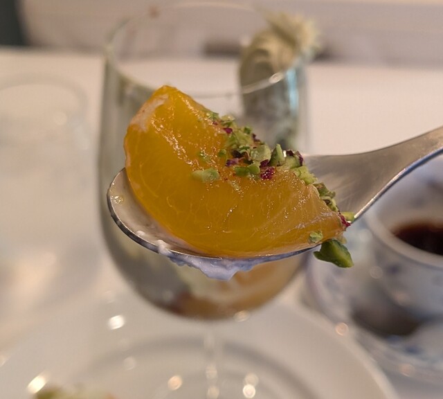 まずは、トップのピスタチオクリームとあんずシャーベットから食べ始めます。