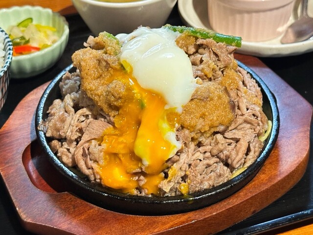 熱々鉄板で出てきておろしダレをぶっかけて頂きます!
