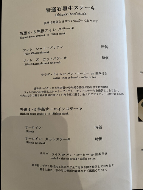 今回はフィレ シャトーブリアンと特選石垣牛ステーキバーガーを注文しました。