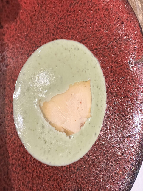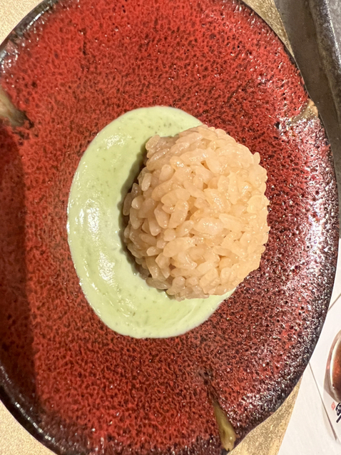 蒸しアワビの肝ソース→シャリ入れてリゾット風