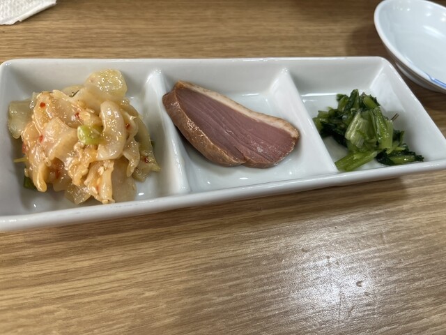 お通し。左からなす味噌、にんにく蒟蒻(味が滲みていてめちゃくちゃお酒進む!)、マグロの漬けみたいな(めっちゃねっとり美味しいー!)