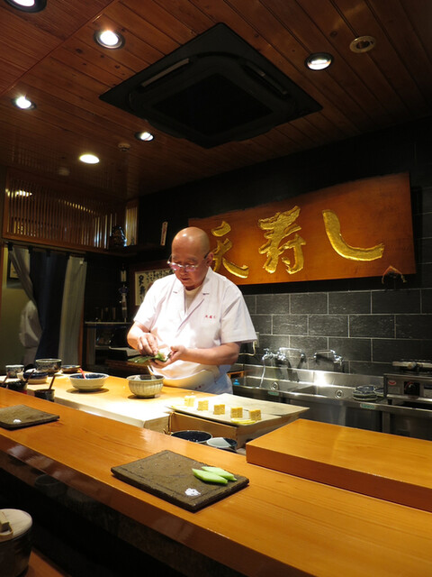 偶然私は次郎さんが握るお寿司を出版社等の接待で20回ほどいただいてますが天寿し京町店の天野さんの握る寿しは初めてです