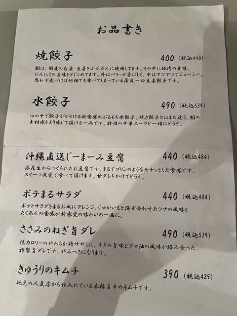 全てのメニュー頼んでみましたが、ささみのねぎ旨ダレが繊細で美味しかった。ポテサラはたくあんのアクセントが良かったです。