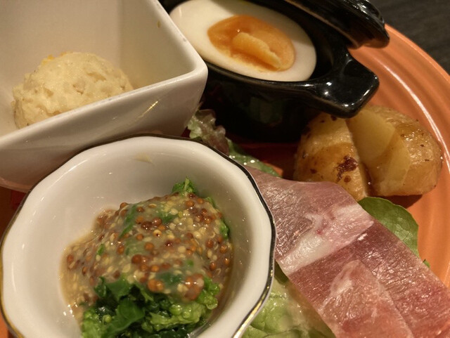 おすすめセット1,100円は食べ応えのあるオードブル5品とドリンク2杯。これは、、すごい、、
