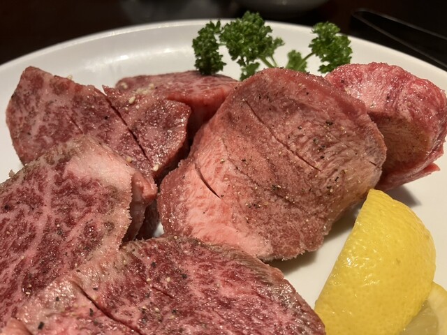 美味いのナンの。バカうま。言葉が出ない美味さとはこのこと。タン、ハラミ、赤身の3種とも100点の美味さ。