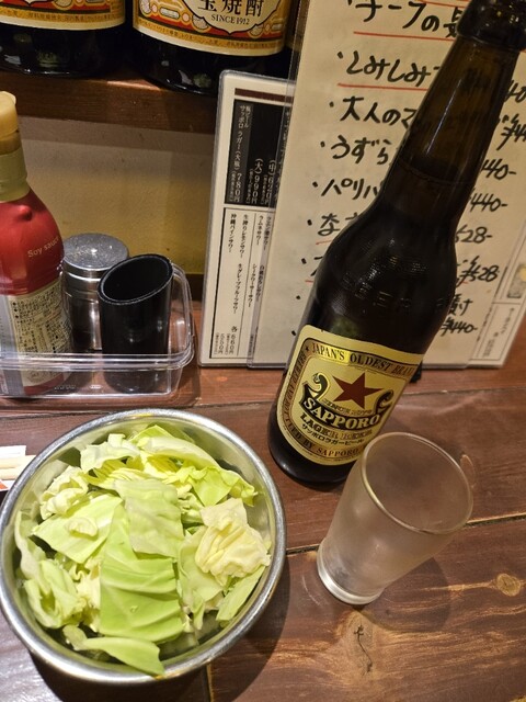 久しぶりに串焼き屋げん森下店さんに行ってきました。まずはサッポロビールの赤星大瓶633の大人の義務教育です。そして自家製ポテトサラダに卯蔵の玉子、通称どんぐりをたのみました。9周年と言うことでチラシ持参の人は焼酎のボトルサービスなのでたのみました。後は鍋等々、毎度の美味にひたりました。キーマ風カレーを頼むのを忘れてしまい、次回です。ご馳走さまでした。