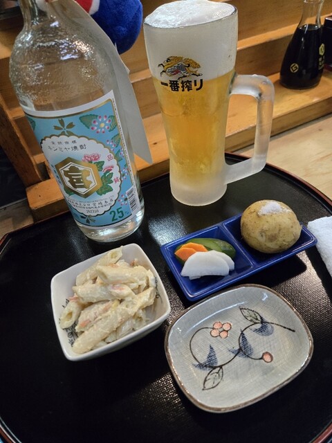 久しぶりに松葉寿司辰巳店さんに行ってきました。先ずは生ビールにお通しです。カキフライに煮魚等々いただきました。そして刺身の盛り合わせです。これには高清水の熱燗です。そして焼酎のお湯割りです。常連客との会話もはずみました。ご馳走さまでした。