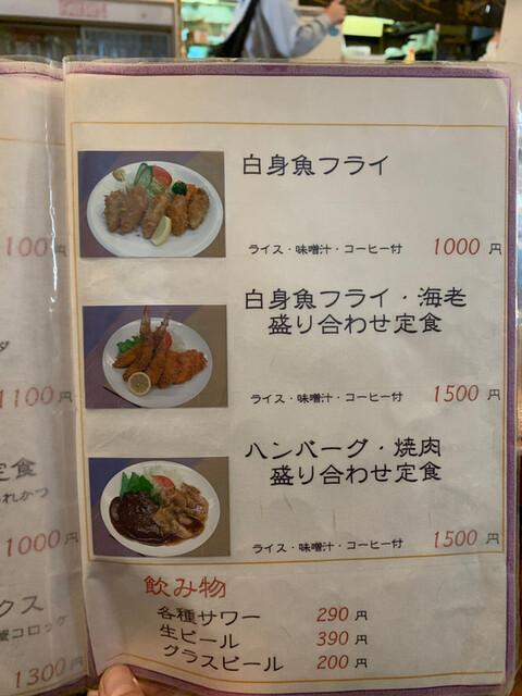 テーブルにランチメニューが見当たらなかったが、目の前のお客さんが頼んだロースカツが大きくて美味しそう。