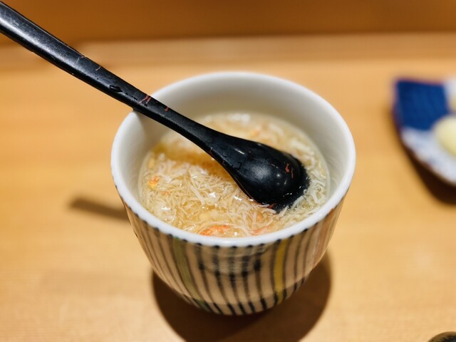 あと、季節ごとに変わる茶碗蒸しが楽しみです。今回はカニでしたが、好きなのは梅です。
