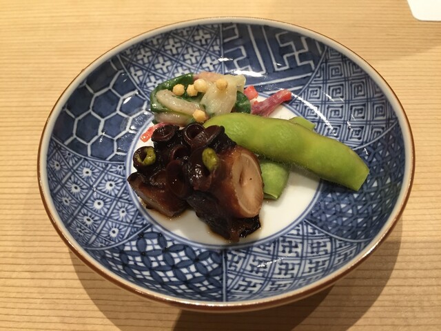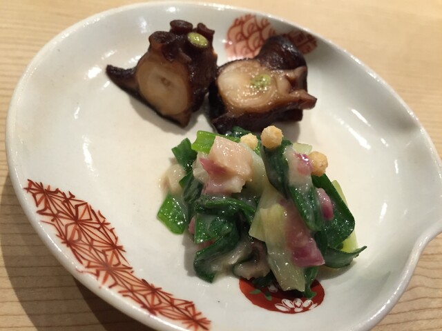 ・タコのやわらか煮 クジラベーコンとワケギぬた和え 八尾の枝豆と共に