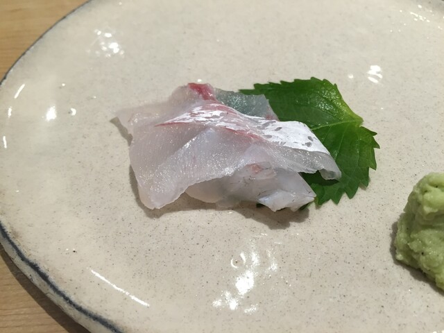 ・お造り:タイ 皮の湯引きとともに、トリ貝、トリ貝炙り