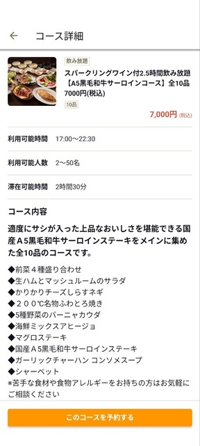 この度はスパークリングワイン付の7,000円