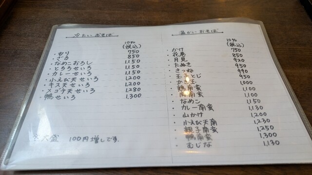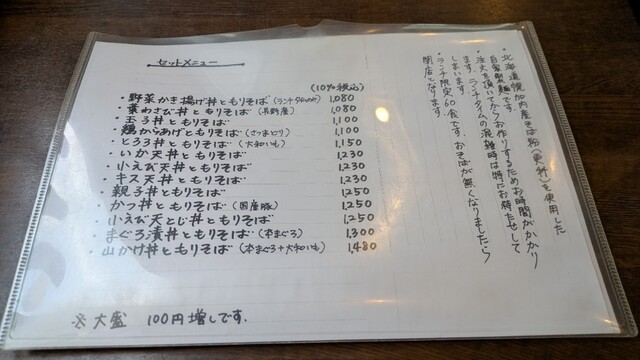 蕎麦大盛りが100円増しのサービス(^^)!。