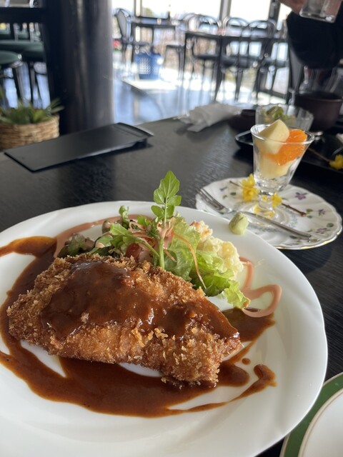 海鮮は真鶴からでとてもぷりぷりで美味しく上品な見た目で、洋食はお肉でボリュームもありこれも美味しい。
