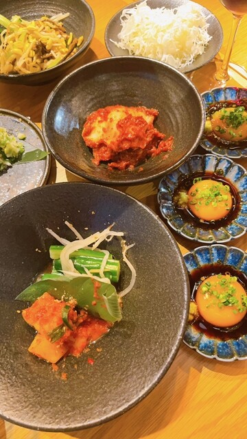 キムチ2種盛りと特上飲めるロースの卵タレ