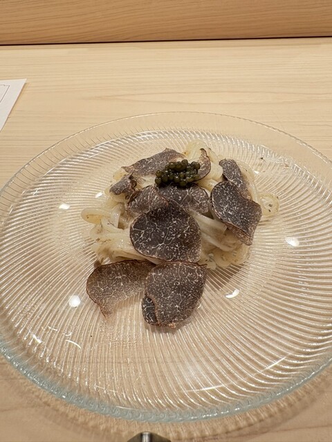 和麺にキャビアとトリュフを合わせた一品は、香りが一気に広がり、もちもちの麺との相性も抜群でした。