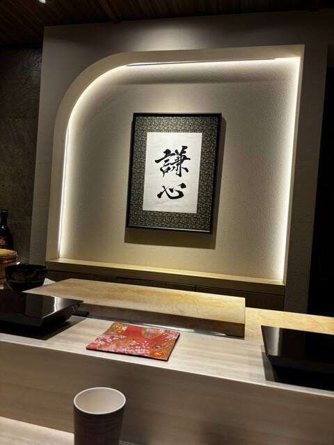 内装は、ドアを開けるとまずは「謙心」の文字が目に入ります。