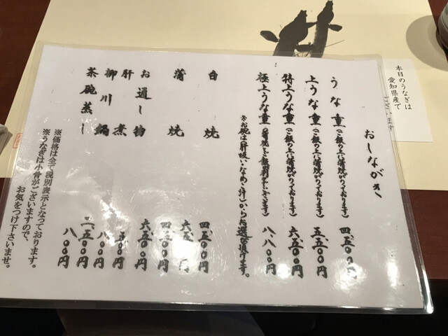 うな重と上うな重の違いはうなぎの種類。上は、青うなぎとのこと、そして、それぞれ1.5匹になると、特上、極上になります。