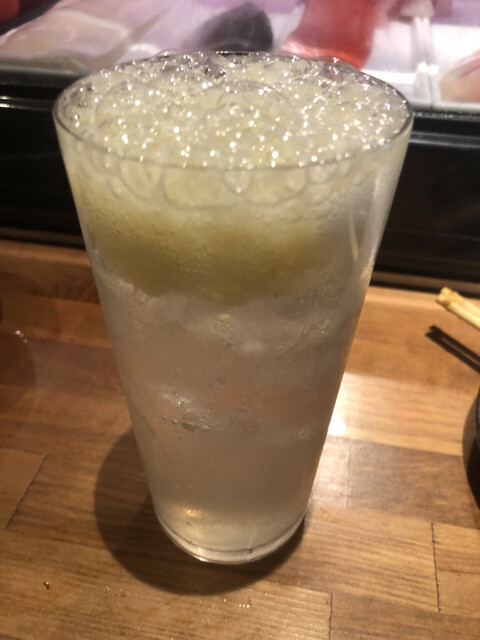 何軒かハシゴしようと決めた一軒目が立ち飲み屋ひとよでした。すでに人でいっぱいで、何とか一人分入れるだけのスペースに飛び込みました。ほとんど全員が注文している700円の刺し盛りに、トロタクを注文。ビールとお店オリジナルのレモンサワーを楽しみました。
