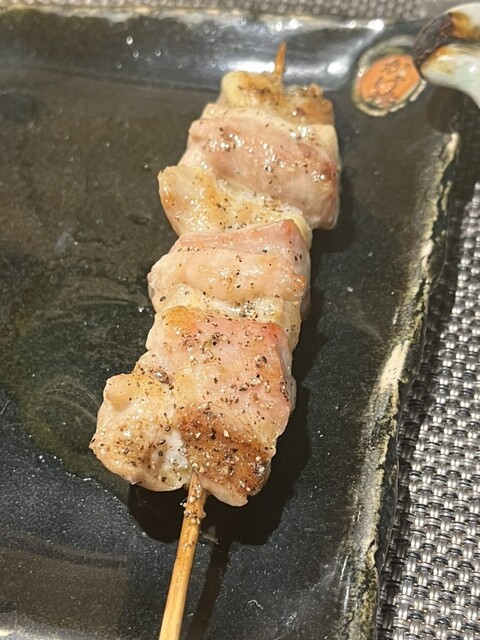 ソースが独特の風味で柔らかな胸肉の風味を広げているのが良く、一個齧って残った肉を見てみると、串ぎりぎりのところに僅かに赤みが残るというギリギリにして完璧な火加減。素晴らしい。
