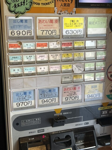 引き戸の店内入ってすぐに食券の券売機があります。噂には聞いていましたが単価が素晴らしい。(むしろ心配)。