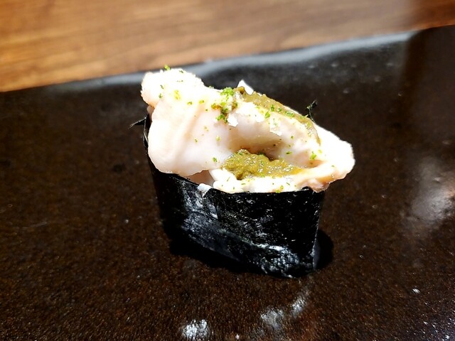 コース構成は新発田本店と同じくお料理と握りが交互に出てきますので、飲みたい方はどんどん飲める、飲まない方はお腹いっぱいで握りが全然食べられないなんて事にもならず、飲む方と飲まない方が一緒に召し上がっても間延びしない、そんな素晴らしいスタイルとなっており良いですね。