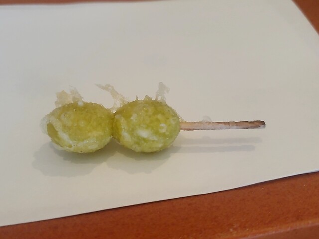 私の席からは全ての作業を目の前で見ることが出来ました。粉を溶いたり油を足したりタネに粉をまぶしたり揚げたりと一連の動作を見ていても天麩羅って難しい。