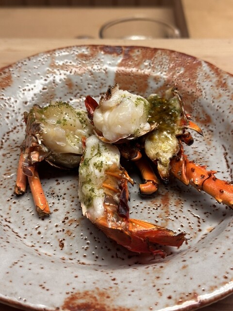 甲殻類の王である伊勢海老。殻を炭の強火で香ばしく焼く。タレは山椒がピリッときいて。レア感とプリッと歯応えのある伊勢海老の身を無心でほうばりました。2人でお伺いしましたが、このときばかりは会話無し!
