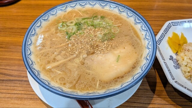 ラーメンは、濃すぎもしない豚骨で、細麺とあいます