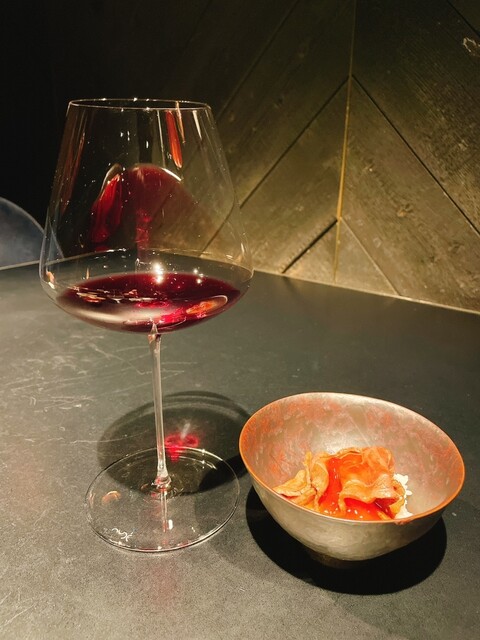 ビルの階段を下ったところにある、隠れ家のような佇まいのお店です。扉を開けても一見ワインが並んでいる壁しかないですが、隠し扉になっていて素敵な創りでした。