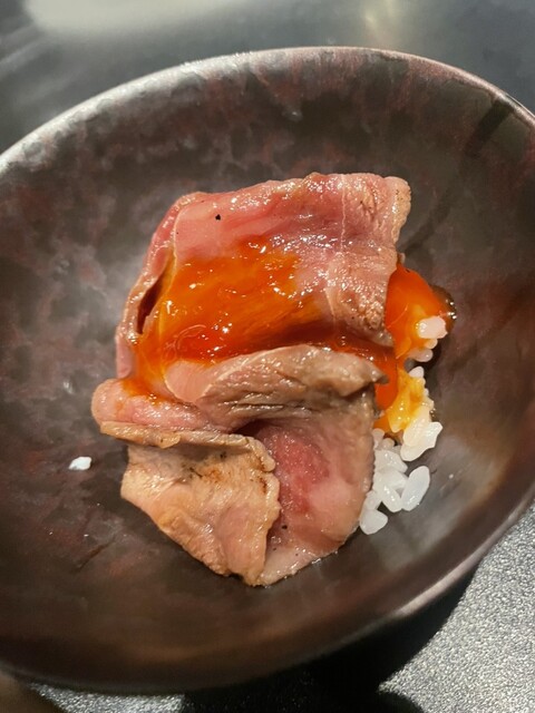 最後はサーロインをタレに1日漬けている卵の卵黄と共にすき焼きで頂きます。濃厚な卵と柔らかいお肉が合わさり、本当に幸せな気持ちになれます。