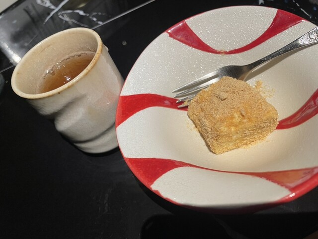 〆の甘味はミルク葛餅でした。甘すぎず、量もそんなに多くなく〆のデザートに相応しい一品でした。