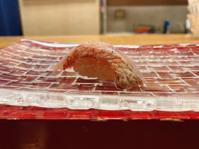 のどぐろ。皮目の脂と香ばしさが混ざり合い飲めるようなお鮨。