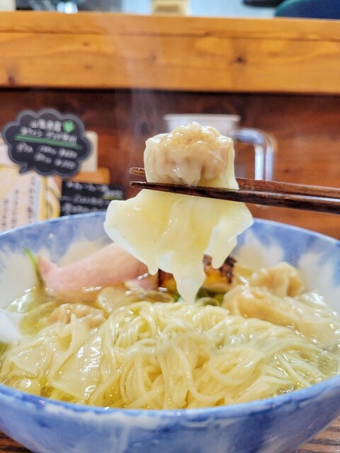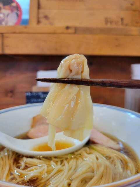 雲呑は香り豚肉雲呑×2、海老雲呑×1の計3個
