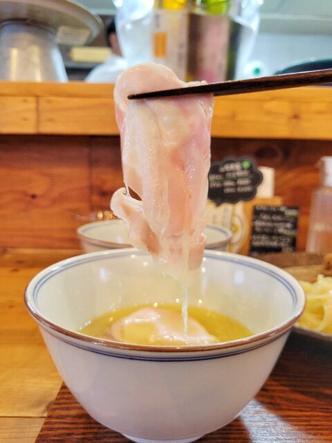 地鶏、香り豚、干し貝柱などをベースとしたスープに啜り心地のイイ麺でめちゃウマ