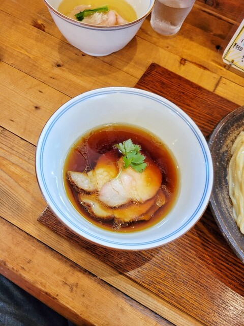 中々来れないからつけ汁が塩と醤油のスープダブル✨
