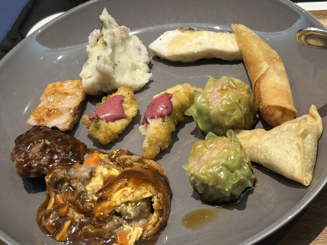 17時からオルカスタジアム一階にあるブルーオーシャンでディナー。友人からお味は五つ星ホテル並みとの情報を得てはらぺこで突撃。前菜10品メイン10品サイドディッシュ10品フルーツ10品デザート10品ハーゲンダッツアイス10品といった感じ。全てが美味しくてハズレ無し。辛子蓮根の春巻き、真似させて頂きます‼️黒トリュフ入り小籠包、冷凍なのに、美味しい…チキンのあられ揚げ、食感が良い‼️鰻ひつまぶし、美味しかったです。根菜の豆乳スープも真似させていただきます‼️