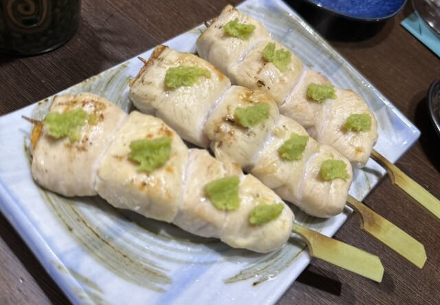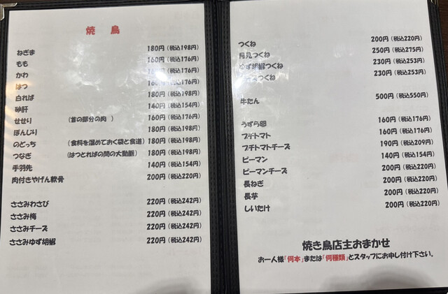 心待ちにしていた焼き鳥はいつものねぎま、もも、かわ、白れば、ささみわさび、ぼんじり、ねぎ、月見つくね、うずら。