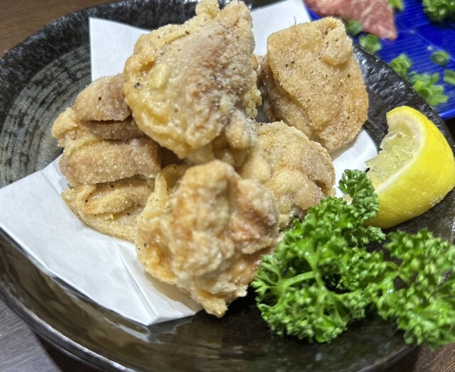 そして信玄どりの唐揚げ、馬刺し、とりスープ。