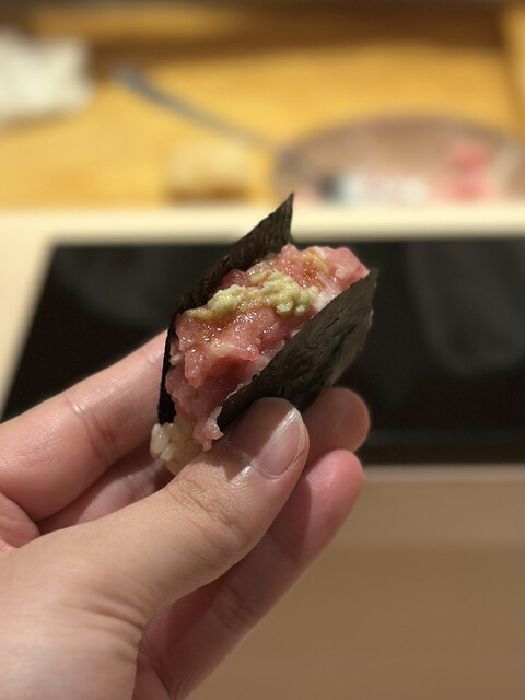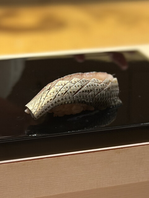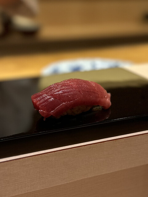 やっぱり鮨のコースを食べに来ていますから、最初に美味しい握りが食いたい、そんな想いに応えてくれる一貫。脂ノリと赤身のバランスが良く、酢がしっかり効いたシャリとの相性抜群。