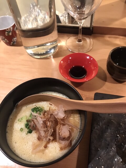 義父はコースで終了。自分は締めのTKGを注文しながら、間に新政の涅槃亀(にるがめ)、十四代といただく…涅槃亀、磨きが90?磨きがこんなに少ない日本酒初めてかも。個性は出るが雑味も…?と言う先入観があったけれど、美味しい!奥行きのあるコクと重すぎない重さ、こんな日本酒があるのね…勉強になりました。